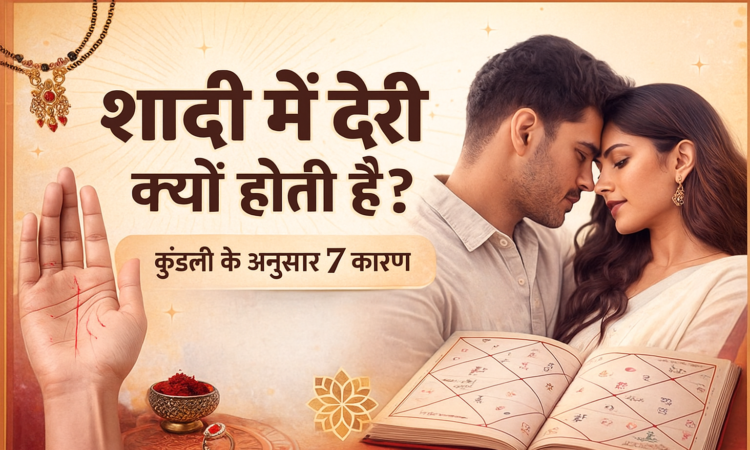 सार — विवाह में देरी क्यों होती है? कुंडली में देरी के कई कारण हो सकते हैं, लेकिन सबसे बड़ा कारण है सप्तम भाव का कमजोर होना या शनि–मंगल–राहु–केतु का प्रभाव।